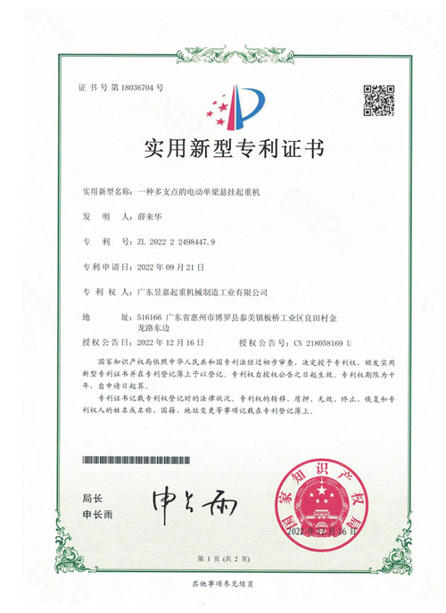 昱嘉榮譽——專利證書