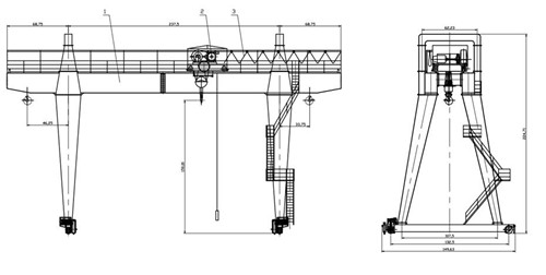MG型吊鉤門式起重機屬雙主梁通用門式起重機,也稱A型雙梁門吊,由橋架、大車運行機構(gòu)、小車、電氣設(shè)備等部分構(gòu)成。本起重機是按照GB/T14406-1993《通用門式起重機》設(shè)計制造。常用起重量為10-50t,工作環(huán)境溫度在-20-+40℃范圍內(nèi)。工作級別A5、A6兩種。本起重機小車導(dǎo)電采用軟纜導(dǎo)電,大車采用滑觸或電纜卷筒方式供電,操縱方式有地面控制、操縱室控制、遙控三種形式供用戶選擇。標準操縱方式為室控,全部機構(gòu)均在司機室操縱并有防雨設(shè)備。適用于露天倉庫、貨(料)場、鐵路車站、港口碼頭各種物料的裝卸和搬運工作。本起重機特點:橋架采用箱形雙梁焊接機構(gòu),起重機運行平穩(wěn)、抗風性能好,各機構(gòu)均設(shè)有安全保護裝置;缺點:貨期長、價格相對較高。