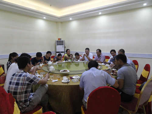 晚上全體員工在一起聚餐,談?wù)撝髯缘男牡茫咳四樕鲜幯?/span>